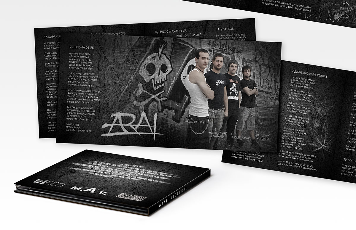 Se trataba de hacer algo plástico, manual, desde dentro. Visceral. Se apostó por una estética agresiva, compuesta a base de rayas (o arañazos) sobre una superficie oscura, que se mantiene a lo largo de todos los elementos que forman el digipack. Las letras de las canciones están escritas a mano y acompañadas por ilustraciones. Realizadas, también, con la misma técnica.